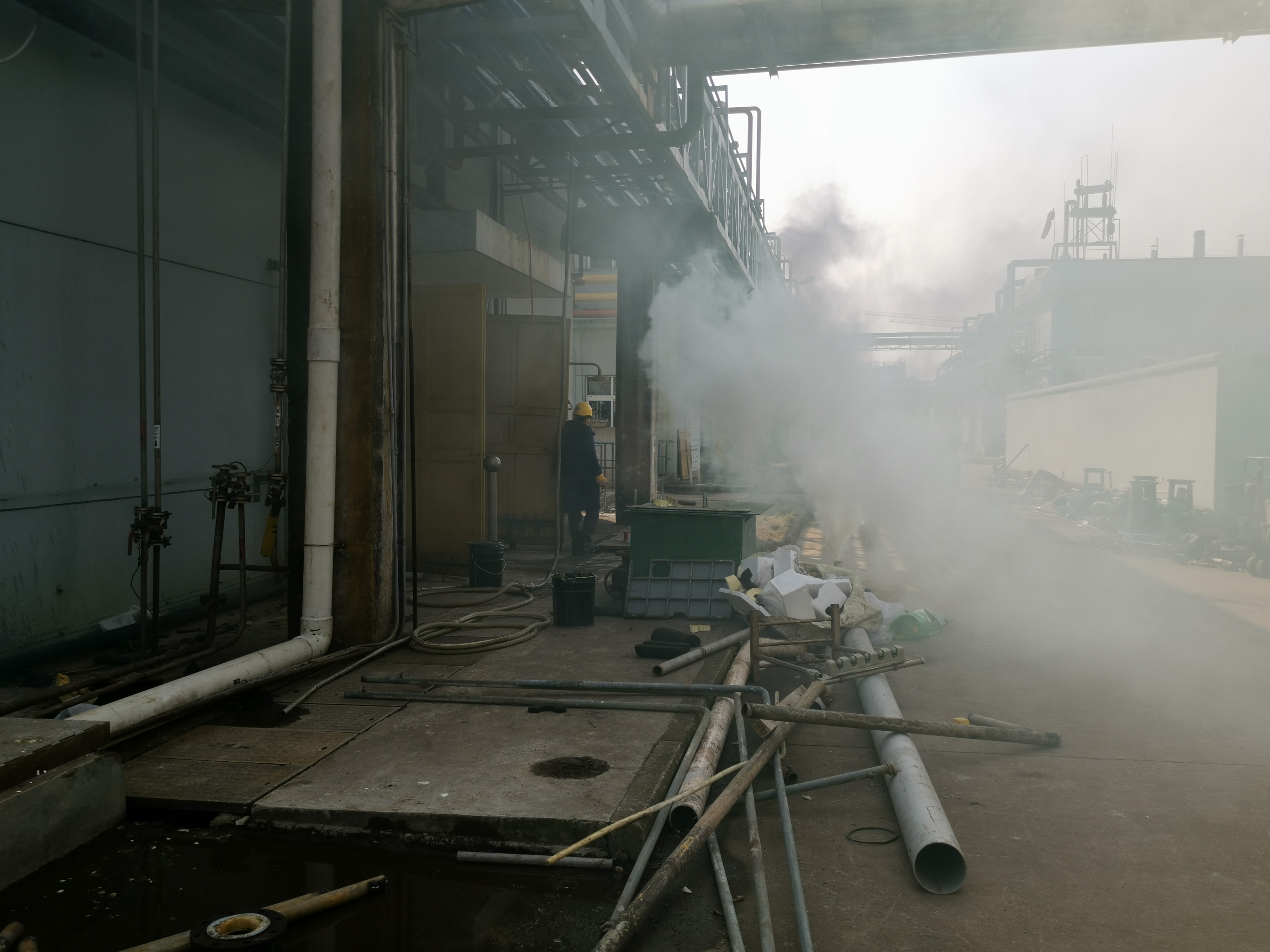 演練現(xiàn)場(chǎng)模擬二車(chē)間縮哌反應(yīng)釜R0202C在反應(yīng)過(guò)程中,突然發(fā)生異常震動(dòng),反應(yīng)釜發(fā)生傾斜。車(chē)間操作人員經(jīng)過(guò)檢查后立即停止攪拌,并報(bào)告車(chē)間主任,車(chē)間發(fā)生人員燙傷以及大量物料泄漏。