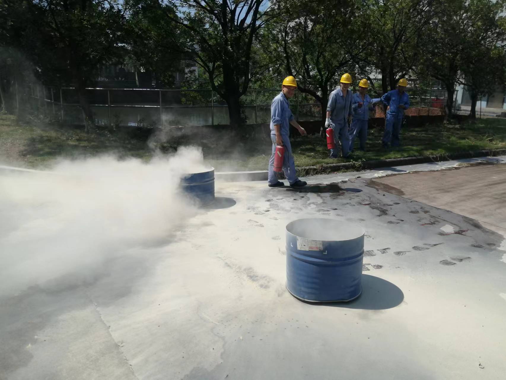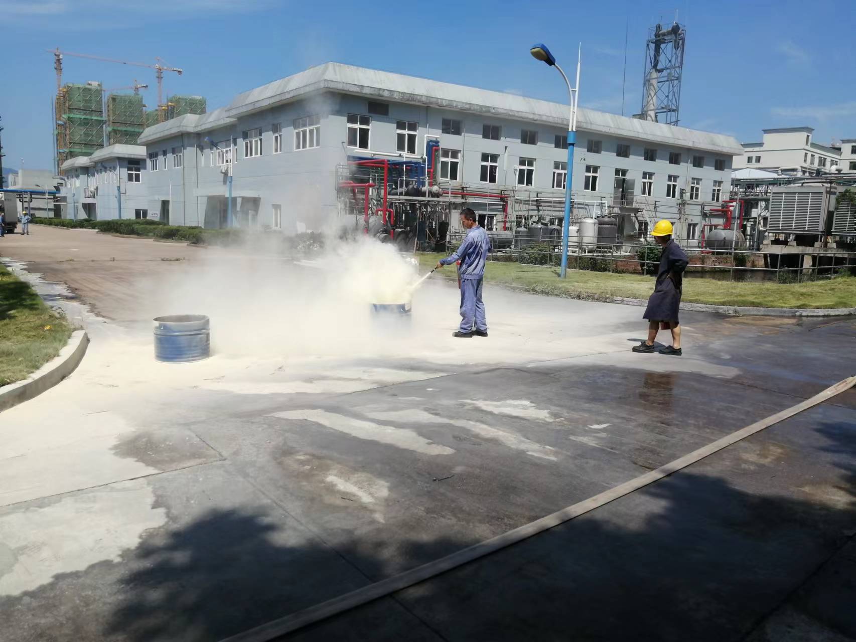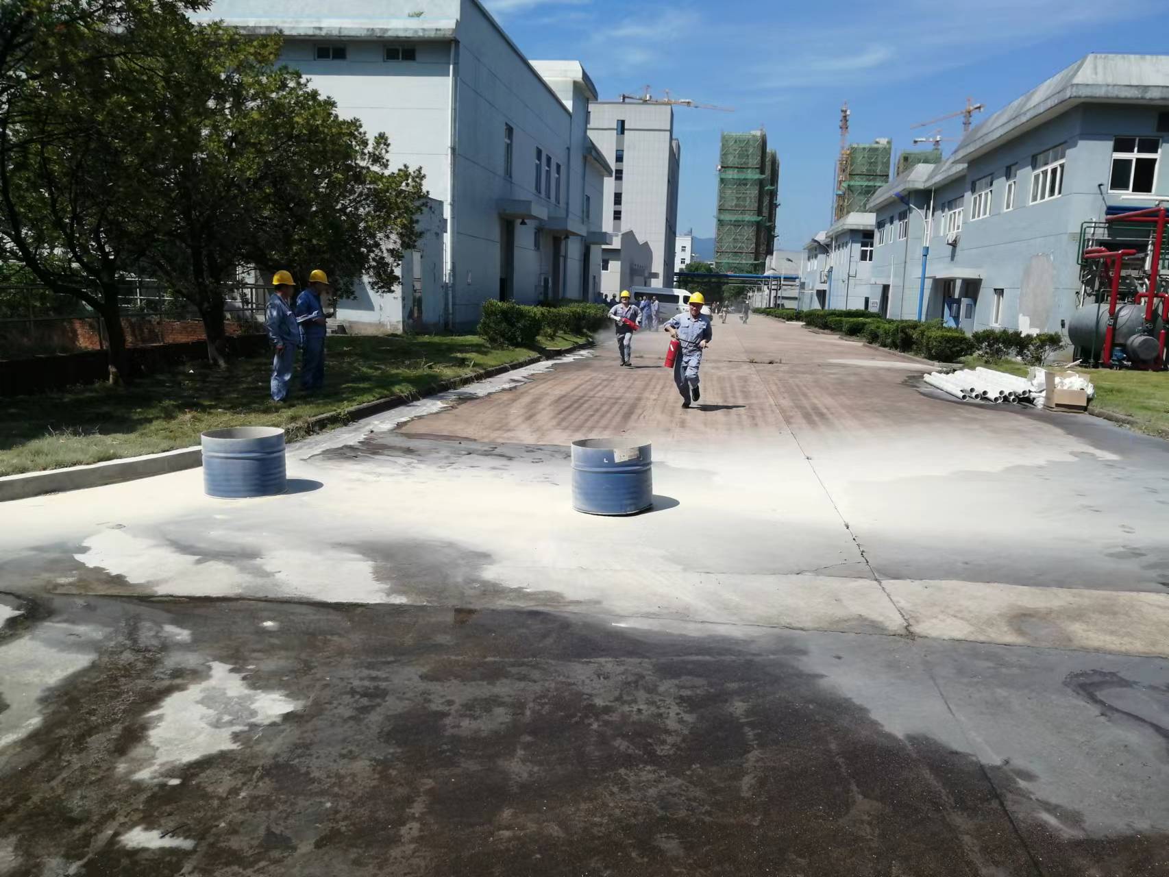 2、滅火器滅火比賽。每一個人一組,隊(duì)員從指定地點(diǎn)跑到滅火區(qū)向滅火桶內(nèi)噴射滅火劑噴完滅火劑計(jì)時結(jié)束。以時間從短到長進(jìn)行排名。