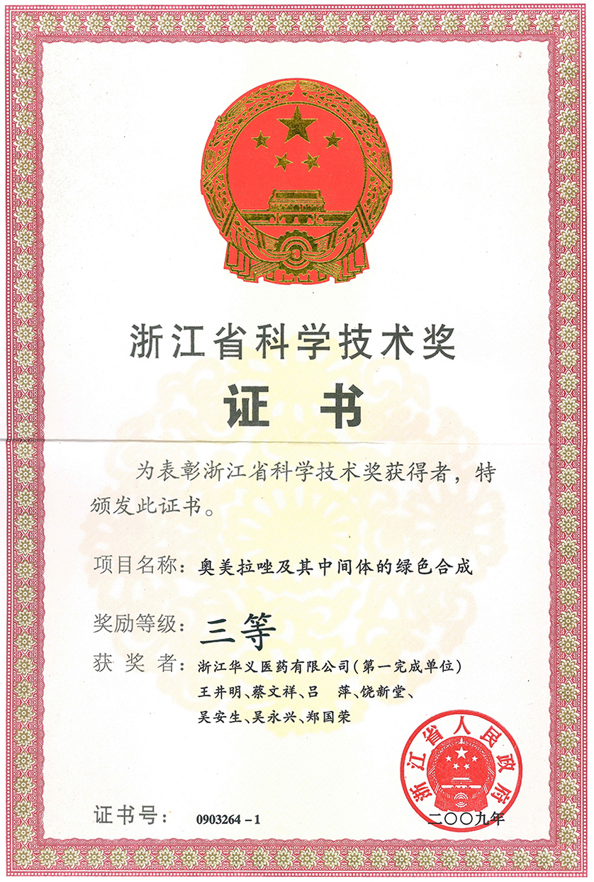 省級優(yōu)秀工業(yè)新產(chǎn)品-奧美拉唑